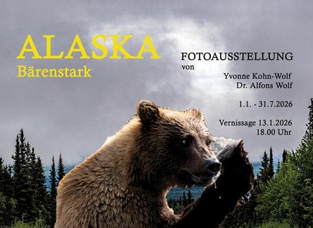 Yvonne Kohn-Wolf und Dr. Alfons Wolf zeigen in der VR-Teilhaberbank im Beratungszentrum Erlangen vom 1. Januar bis 31. Juli ihre Fotoausstellung „Alaska bärenstark“.