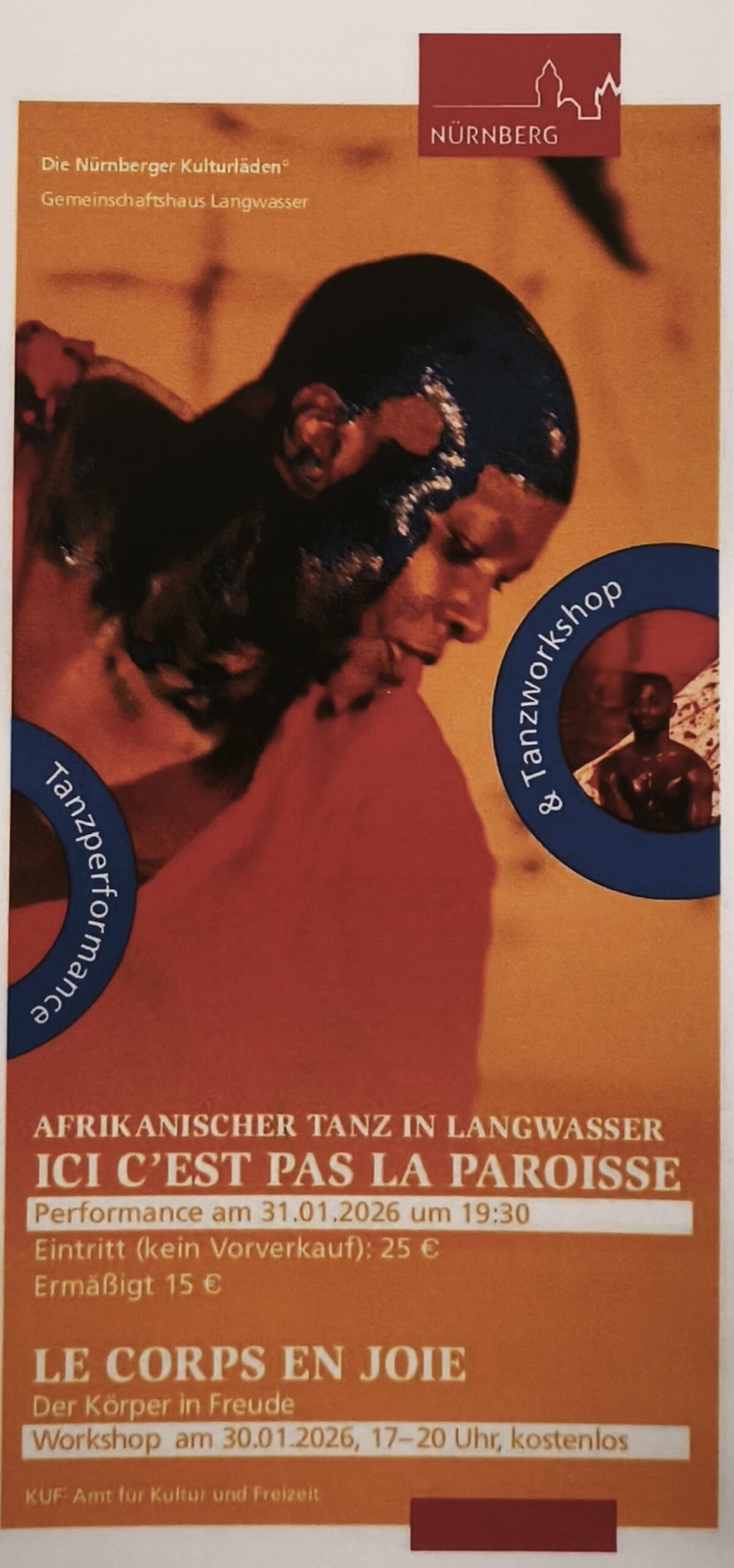 Auf dieser Erfahrung basiert seine Idee, die Tanzcompagnie nach Nürnberg einzuladen und im Gemeinschaftshaus Langwasser eine Tanzvorführung in Nürnberg zu veranstalten.